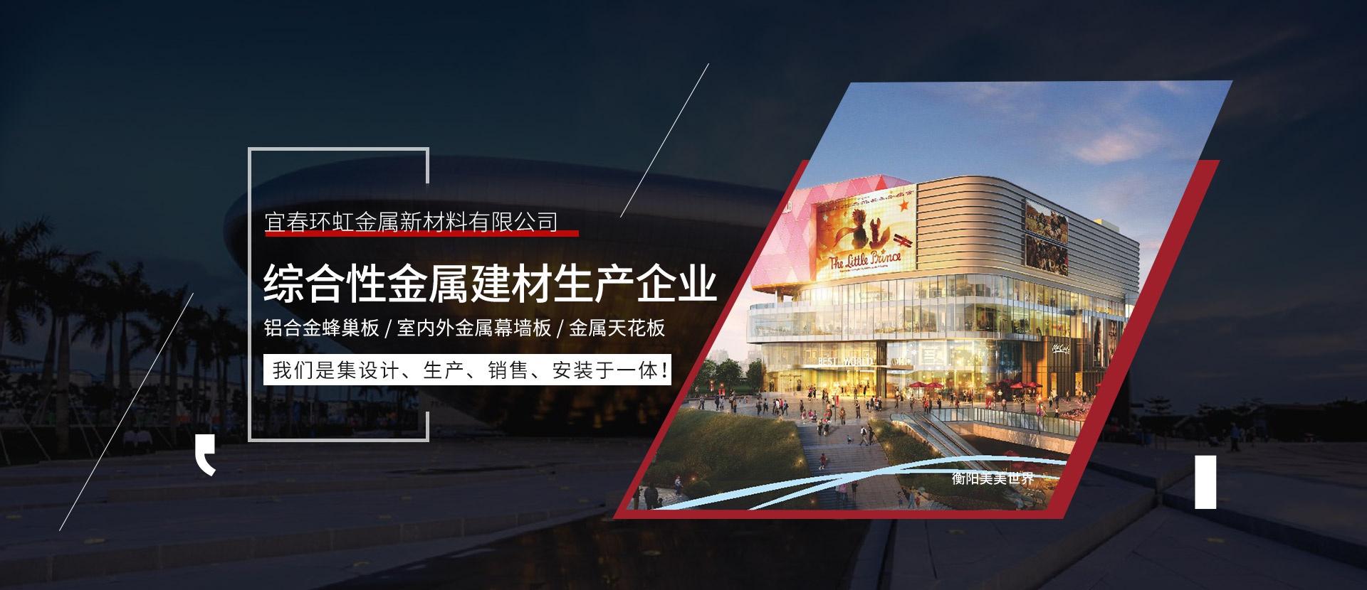 宜春環(huán)虹金屬新材料有限公司總部位于廣東省佛山市創(chuàng)立于2011年。公司建設(shè)有高標(biāo)準(zhǔn)的現(xiàn)代化工業(yè)生產(chǎn)廠房及完備的生活配套設(shè)施,是一家生產(chǎn)鋁單板、鋁合金蜂窩板、室內(nèi)外金屬幕墻板、金屬天花板等新型建筑裝飾材料的現(xiàn)代化企業(yè)。從產(chǎn)品設(shè)計(jì)到生產(chǎn)檢驗(yàn)、施工安裝及服務(wù)都嚴(yán)格按照ISO09001和ISO14001 2015質(zhì)量與環(huán)境保證體系實(shí)行嚴(yán)格的控制和管理,并著力為客戶提供優(yōu)良的個性化服務(wù)和相關(guān)解決方案。公司擁有一批高素質(zhì)、高水平的...